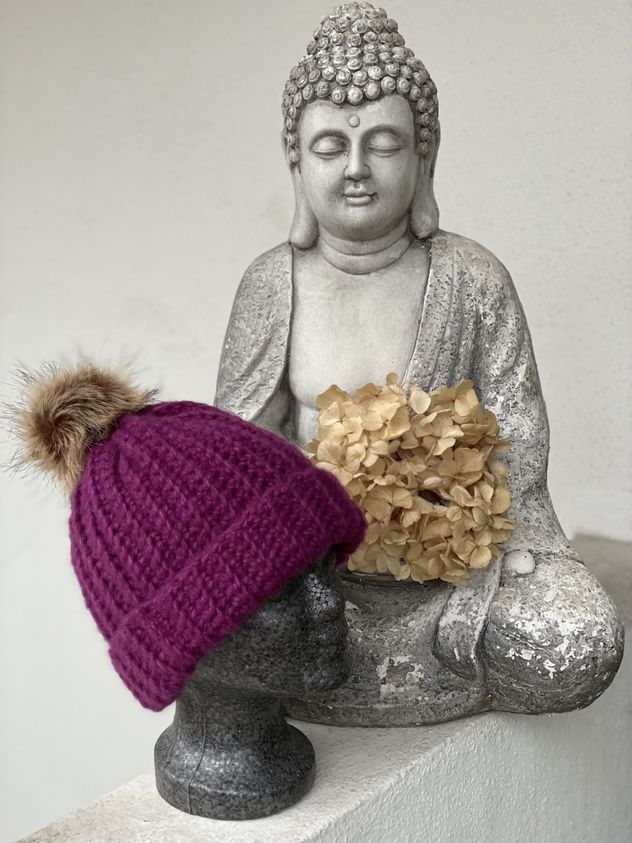 Du weißt nicht wie? Gerne zeige ich Dir, wie Du diese Mütze selber häkeln kannst.
